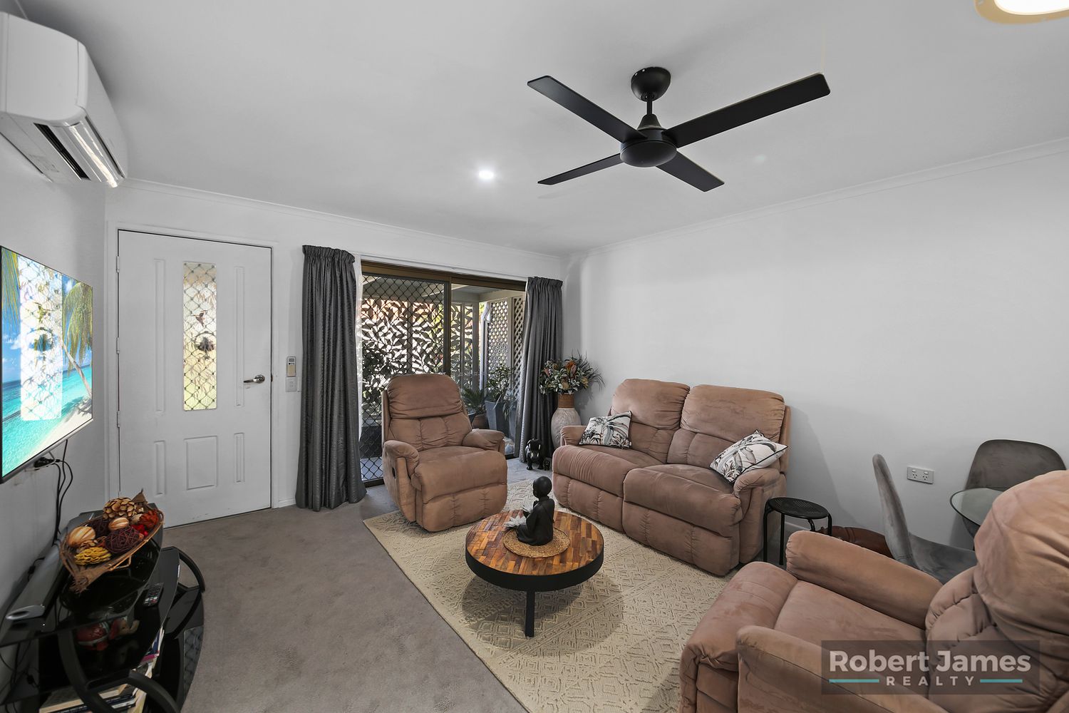 If you are thinking of downsizing and enjoying life to the fullest, this unit is for you with all the hard work of the reno's having been done, just move in and enjoy this immaculate forever home. Kitchen is a good size with a Westinghouse dishwasher, good storage, overhead cupboards, great space to prepare meals and has aspect out to the back patio and garden. Light open plan kitchen, dining, living with reverse cycle air conditioning & new ceiling fans throughout. Dining area is next to the servery bench, living opens out to the covered front patio, with modern white laser cut screens. Ideal for the privacy factor but still allowing lots of natural light into the unit. You have the choice of the front or back patio to escape to have a morning cuppa or an afternoon get together with friends for drinks. Main bedroom is a good size, wall of wardrobes, new ceiling fan, aspect overlooking the front patio and lush front garden. 2nd bedroom is at the back of the unit, built-in, new ceiling fan with aspect out to the back patio and garden. Bathroom that has been totally renovated is between the 2 bedrooms, easy access large walk-in shower, new vanity with cupboards & drawers, large mirror, floor to ceiling tiles, being in the middle of the home there is a sky light, allowing in lots of natural light. There is a separate laundry near the back door. New flooring throughout the unit. The very private back patio is ideal for all your entertaining or a lovely place to relax and have a cuppa. There are pull down blinds along the exterior of the back patio for privacy & shade or in-clement weather. Single lock up garage with auto door, at the back of the garage is a storage room/workshop, this has a back door that opens out to your back yard, then on to the back patio, so you are under cover to access the unit on those rainy days. The owners haven't missed a thing, everything you could possibly want in this wonderful home, and quality products used throughout. Complex is an over 50's and has facilities of swimming pool, community hall, activities if you wish to join in. A leisurely walk takes you down to Noosa River where the barge goes across the Noosa North Shore. Tewantin Village with all the local amenities you need, just a few minutes away. Not very often you can buy a Free Hold Unit with all this to offer, plus low Body Corp Fees, No Exit Fees, Pet Friendly, Bus Stop at front entrance with regular buses. Please Note this is an Over 50's Complex - not a retirement village.
