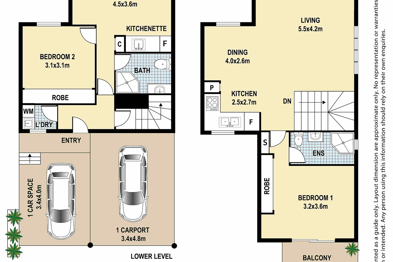 On the lower level with separate entry, you will find a fully self contained one bedroom studio apartment with kitchenette, being one of the larger lake front units it has a separate bedroom and bathroom. The Studio is practical and relaxing also with a deck overlooking the lake. The 2 units share a laundry & have their own covered double car accommodation right outside the front door.