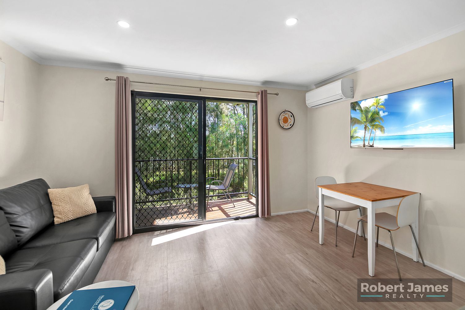 The 1- bedroom unit upstairs has a generous open plan design living, dining, kitchen with Lake views from different parts of this upstairs area, plus a covered balcony overlooking the lake, walkways to the waters edge, lots of fauna & flora. Ideal spot to have an afternoon drink and watch the glorious sunsets in winter or relax on in summer and catch the Lake & Noosa River breezes. Main bedroom is roomy with a wall of built-ins, ensuite & a small deck off this bedroom with perfect easterly aspect to catch the morning sun in winter.