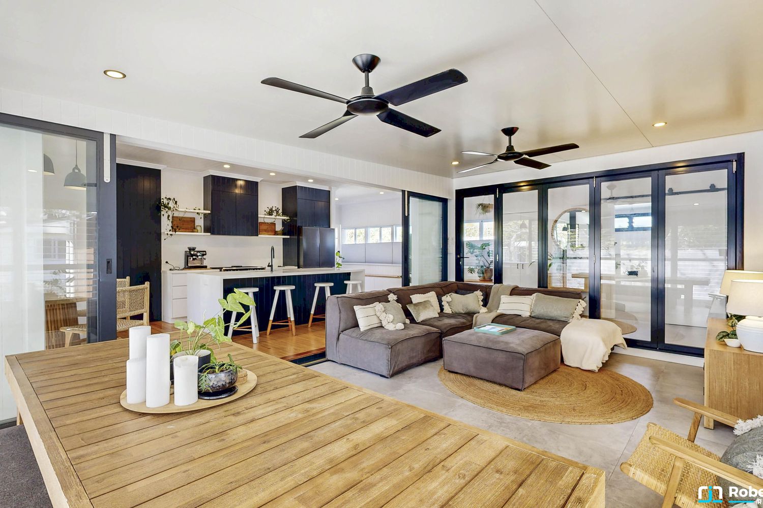 • Designer living - Farrago Interiors kitchen, breezy indoor-outdoor spaces, 10 m freshwater lap pool.