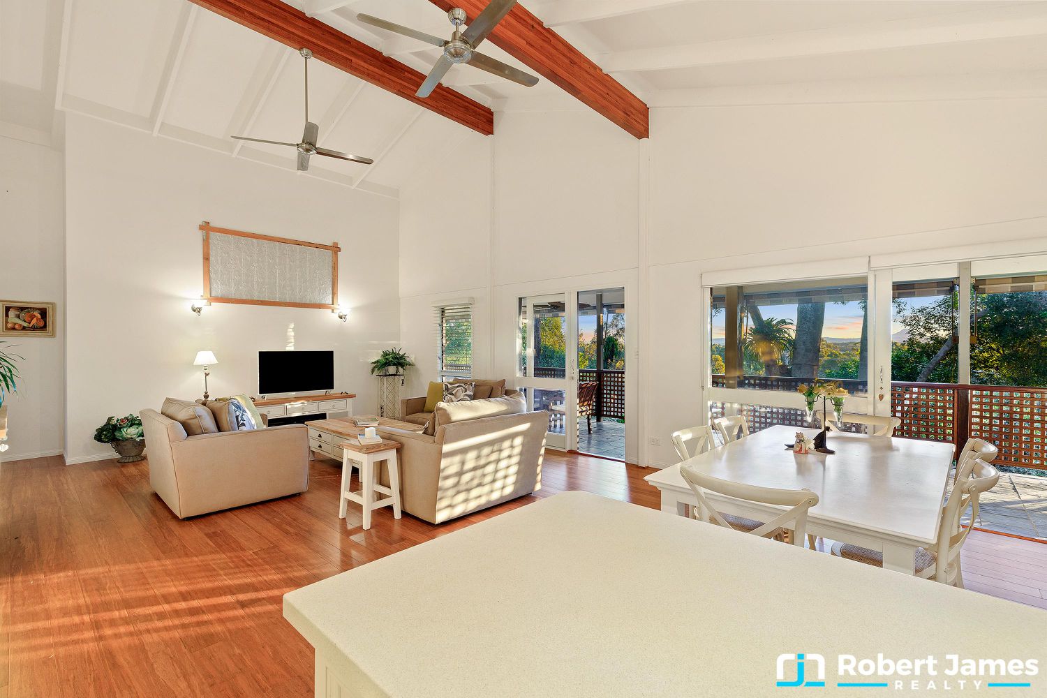 Impressive unique builders home in Noosa Heads suitable for duel living, Welcome to your dream home at 15 Moonare Crescent, nestled in the heart of the prestigious Noosa Heads. This exquisite 4-bedroom, 3-bathroom residence offers a perfect blend of modern architecture and natural beauty, making it an ideal sanctuary for families and entertainers alike. With 4 generously sized bedrooms, including a luxurious master suite, this home provides ample space for relaxation and privacy. Each room is thoughtfully designed with comfort in mind, featuring large windows that invite natural light and offer stunning views of the surrounding greenery. Enjoy the convenience of 3 well-appointed bathrooms, complete with modern fixtures and finishes. The heart of the home is undoubtedly the stylish kitchen, equipped with high-end appliances, sleek cabinetry, and ample bench space. A well equiped Kitchen with breakfast bar, gas cooktop and large oven, country style granite island bench top, Looking through timber windows and sliding doors to a large return veranda to enjoy entertaining and taking in the views to Mt Cooroy. Whether you're hosting a dinner party or enjoying a quiet meal with family, this kitchen is sure to impress. Stairs downstairs lead to an open plan living area plus two bedrooms, a bathroom & Kitchenette & laundry, plus a work shop, great for separate living.