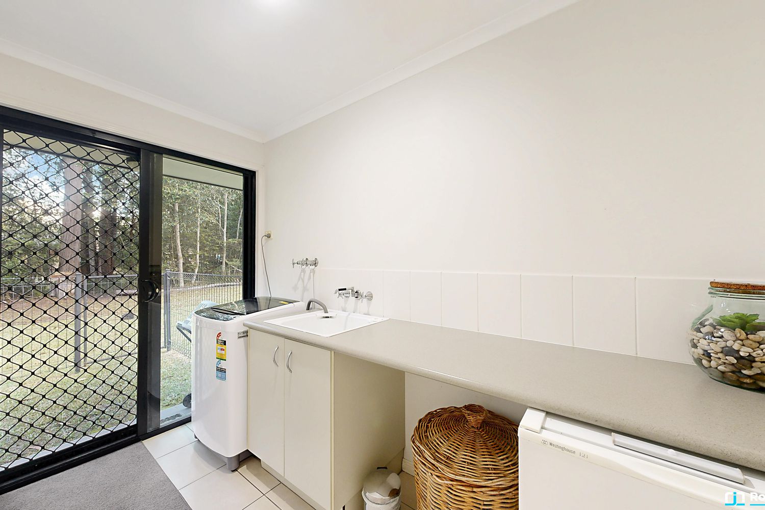 Inside, the heart of the home is the spacious kitchen, perfectly placed to overlook the expansive backyard - an ideal layout for entertaining or keeping an eye on the kids. A separate living and dining area flows effortlessly out through glass doors to the large undercover patio, perfect for alfresco dining or relaxing in nature's tranquillity.
