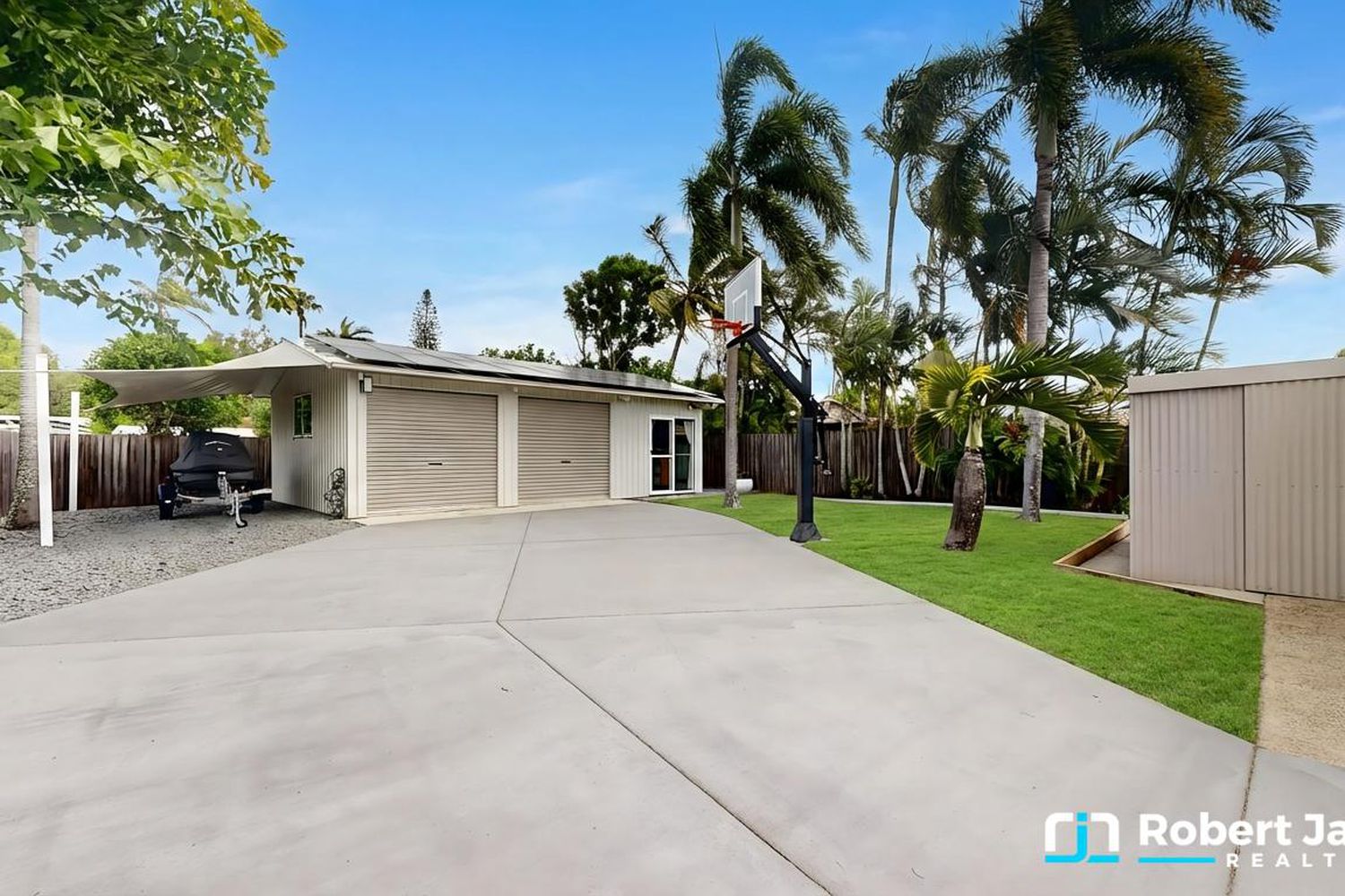The outdoor features are exceptional. Side access leads to a spacious backyard with room for a pool, a grassed play area with 'Megaslam' premium basketball hoop for the kids, and multiple storage solutions. A substantial 9x6m rear shed includes two parking bays, a separate office and 15-amp power, complemented by undercover side parking, a single lock-up garage at the front, and an additional 3.6 x 2.4m garden shed. Security and efficiency are well covered with electric front and side gates, full fencing with video intercom, 6.6kW solar, insulated roof, whirly birds, and a recently repointed and repainted roof.